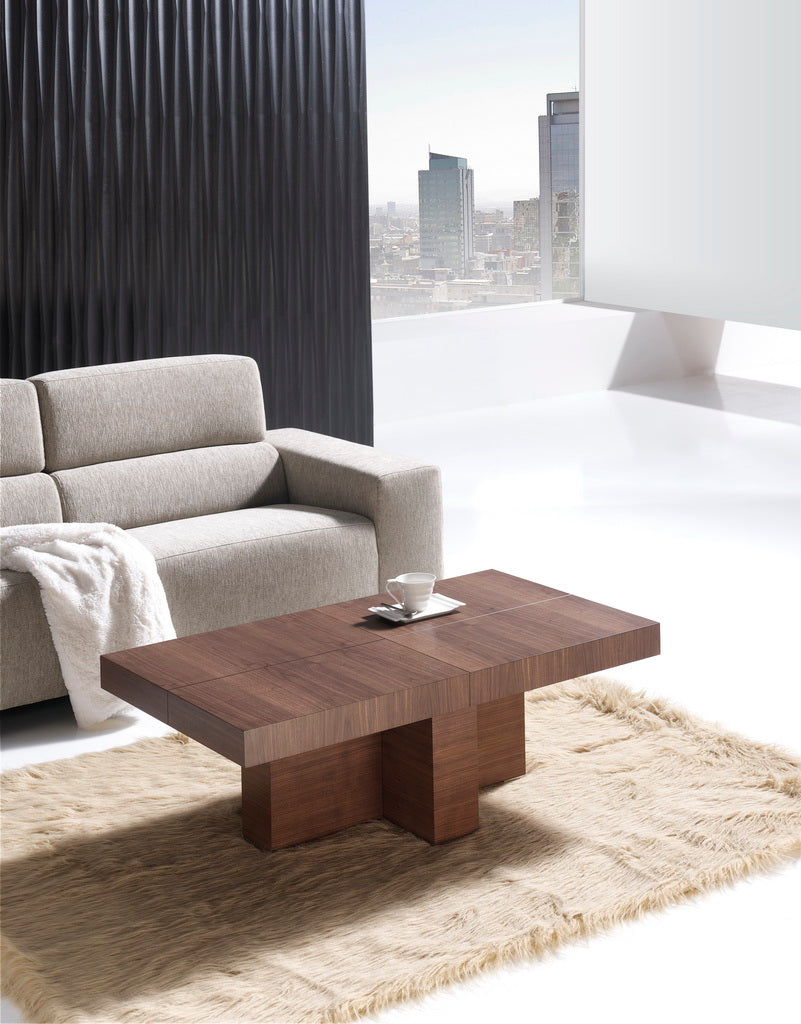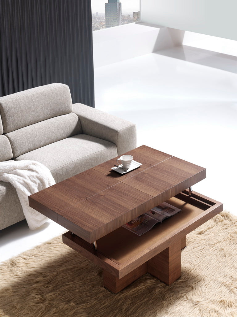 Mesa centro de 115x65x40 cm elevable a 57 cm, toda lacada blanco mate