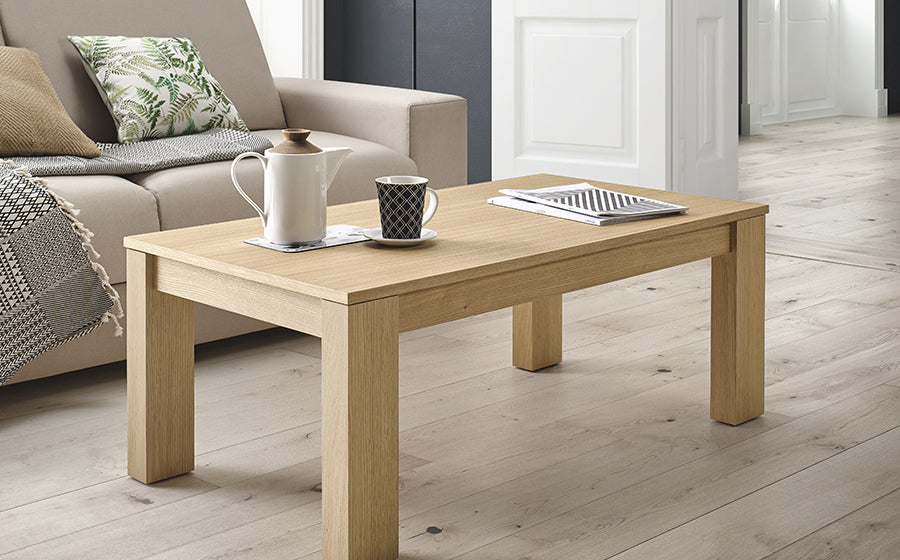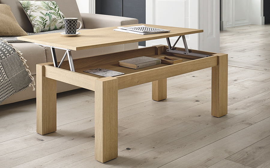 Mes centro elevable de 110x60 cm, tapa en roble.