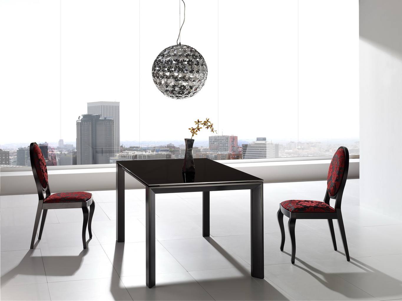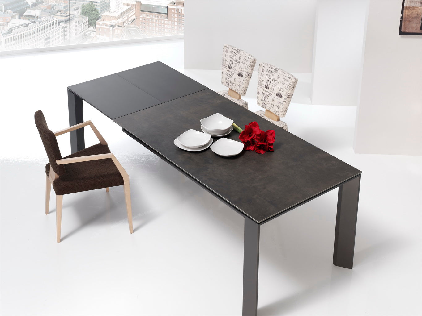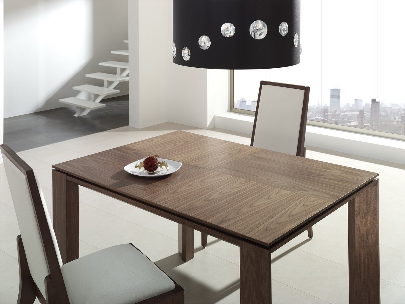Mesa de comedor de 140x90 cm con dos extensibles, abierta 190 y 240x90 cm. estructura en nogal americano, tapa porcelánica Hidra Argen.