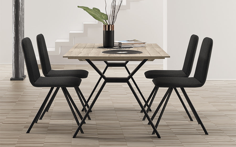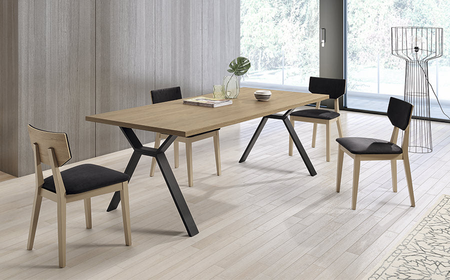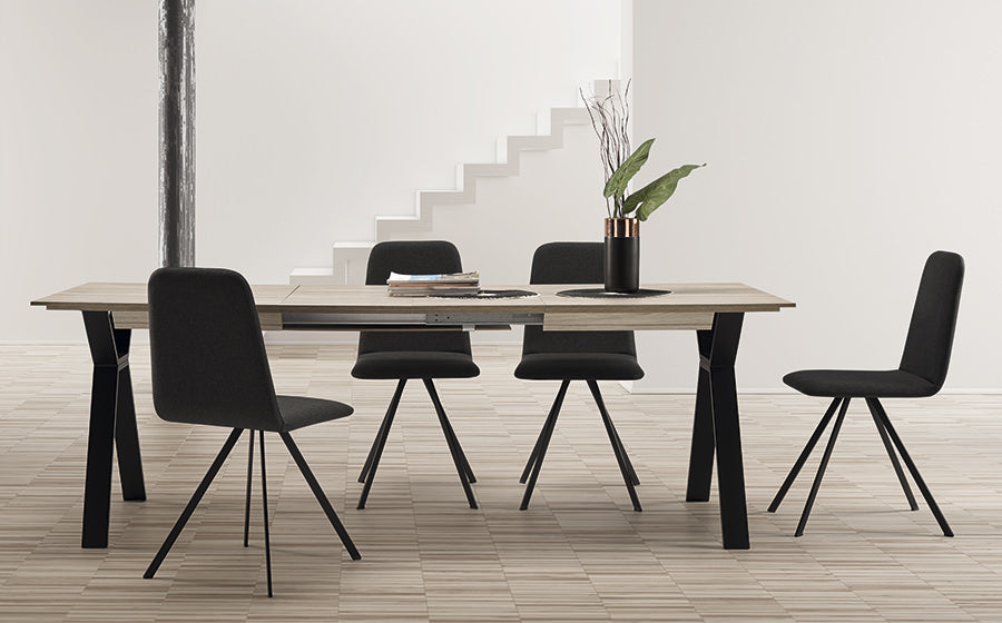 Mesa comedor de 130x90 cm 2 extensibles a 170 y 210x90 cm. En melamina y patas metálicas negras.
