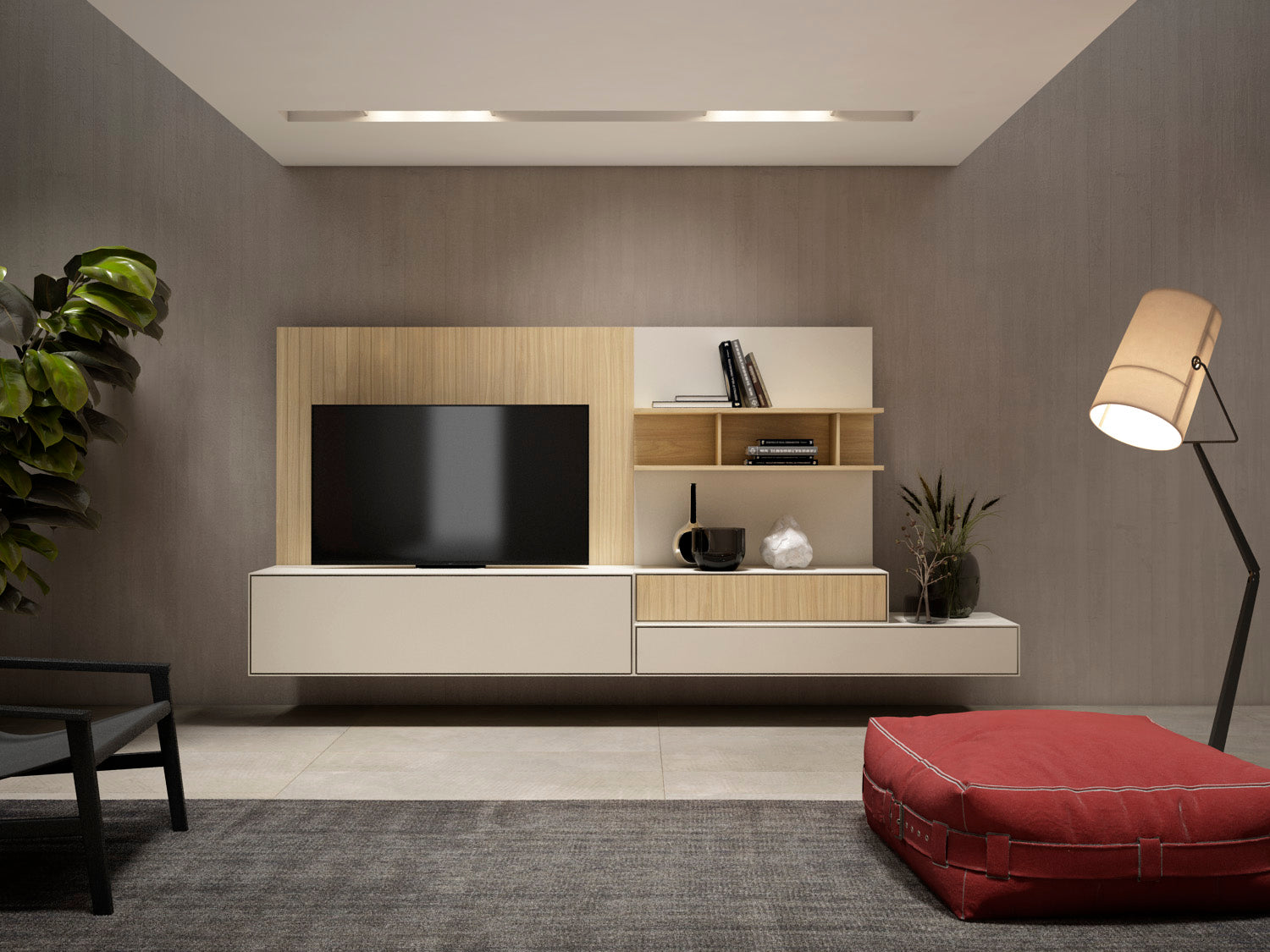 Apilable en castaño y perla colgado a pared.