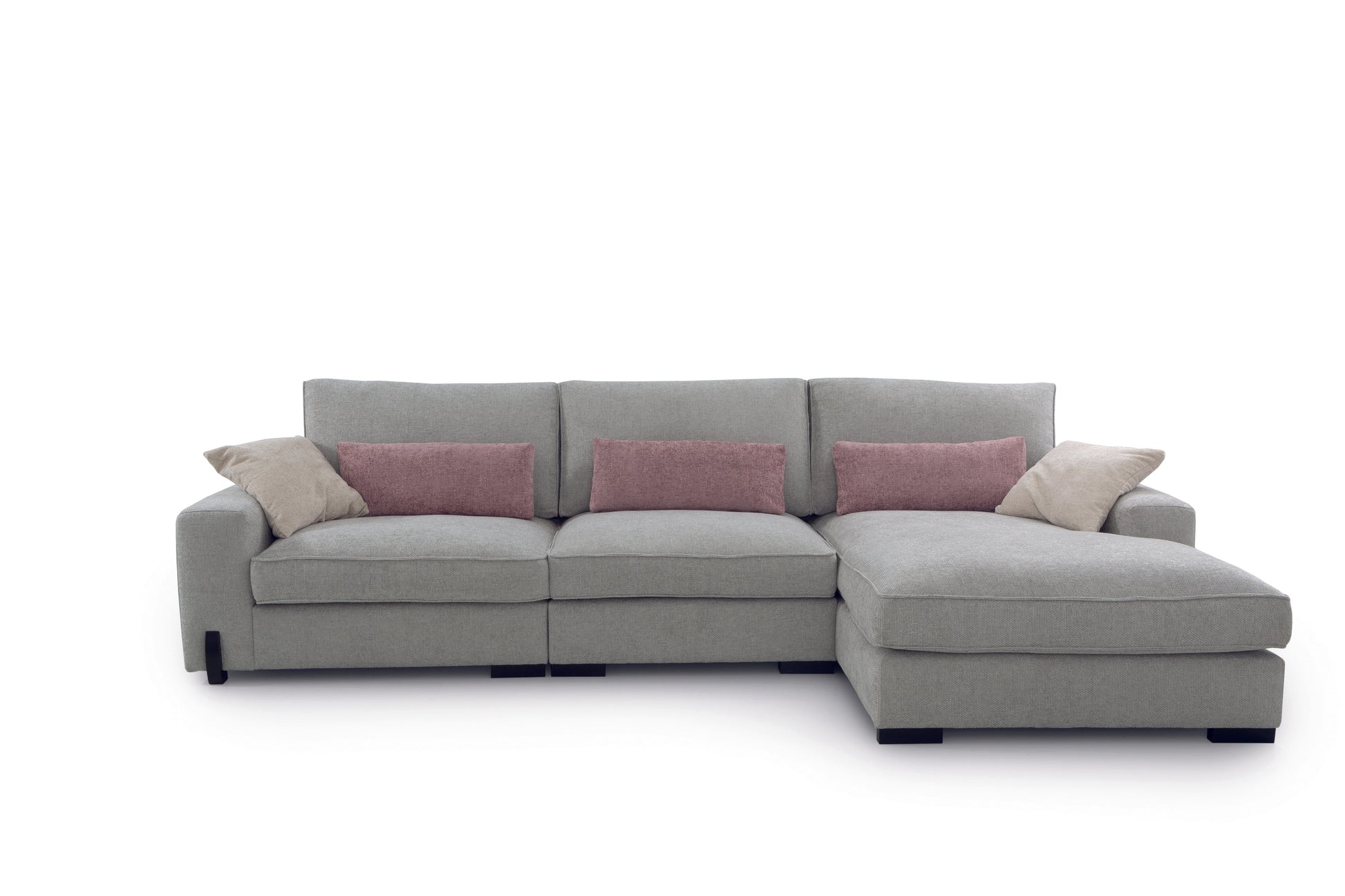 Composición rinconera con terminal chaeslongue con asientos y respaldos fijos.