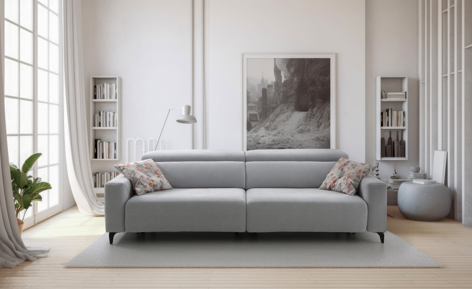 Sofá respaldos italianos y asientos deslizantes de carro.